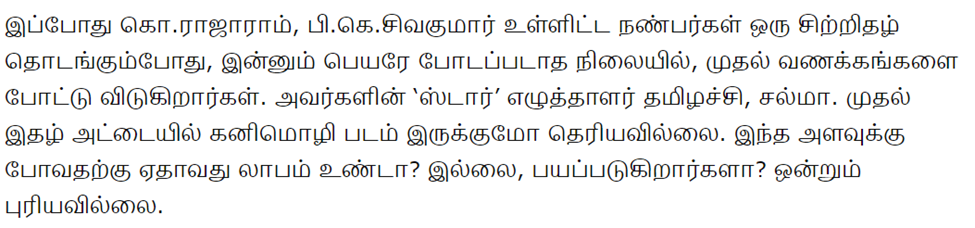 நான் எழுதிய பேஸ்புக் பதிவின் முழுவடிவத்தை இங்கேயும் கொடுக்கிறேன். (அந்தப் பதிவின் சுட்டி இங்கே: https://www.facebook.com/574012146/posts/pfbid034JPYzFFDKCoD3Miqy2NwZPDFoj4TFzxe5GMRzd7ELSzkRGo7GQeh7vxJEwPNxo8dl/?d=w&mibextid=qC1gEa):